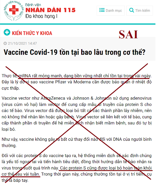 Phần 1: “mRNA và protein gai không tồn tại lâutrong cơ thể… trong vòng vài ngày” là thông tin dối trá!